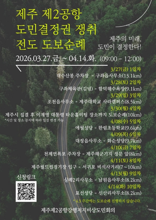 “제2공항 주민투표 실시” 제주 시민단체 도보…