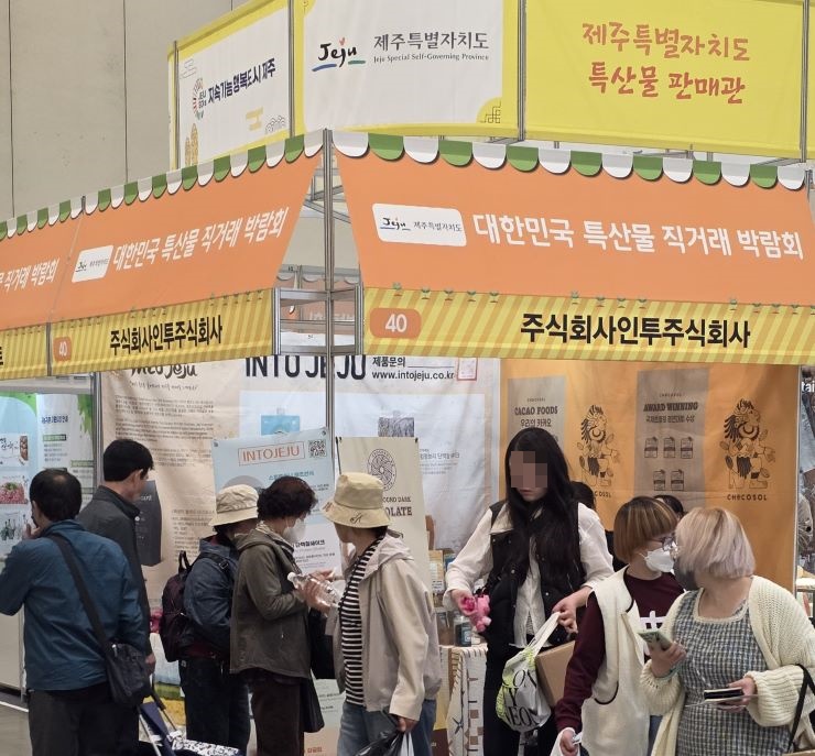 '제12회 대한민국 대표 특산물 직거래 박람회'가 지난 26~29일 나흘 간 부산 벡스코 제1전시장에서 열렸다. 제주지역 5개 참가업체 부스에도 방문객 발길이 이어졌다. 한국전시산업원 제공