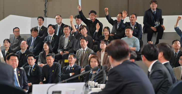 도민들이 건의를 위해 거수하고 있다. 제주도청 출입기자단
