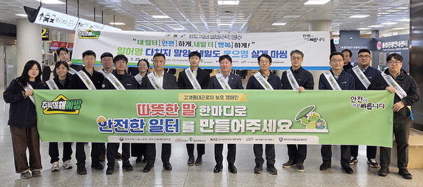 [한라일보] 광주고용노동청 제주산재예방감독팀, 안전보건공단 제주지역본부(본부장 한정민), 한국공항공사 제주공항(공항장 장세환), 제주개발공사(사장 백경훈)는 지난달 25일 제주공항에서 '내 일터 안전하게, 내일 더 행복하게' 슬로건 홍보와 고객응대근로자 보호 캠페인을 실시했다.