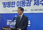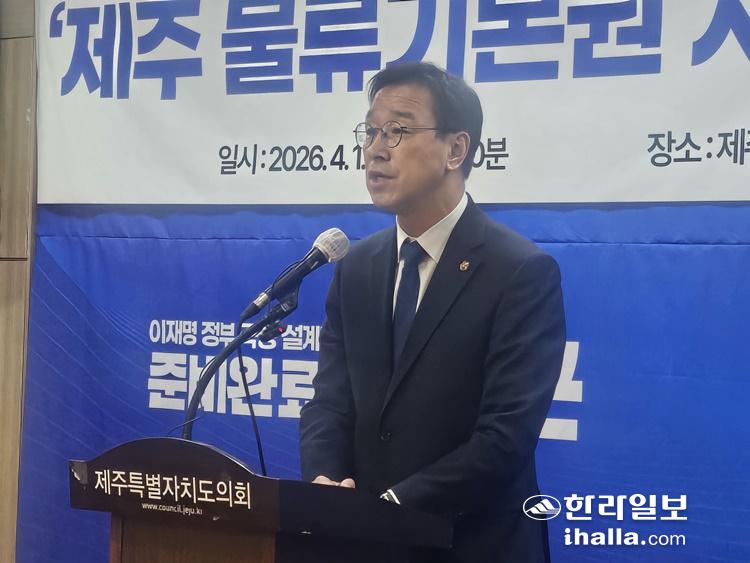 위성곤 의원은 1일 제주도의회 도민카페에서 기자회견을 열고 '물류기본권'정책을 발표했다. 오소범 기자