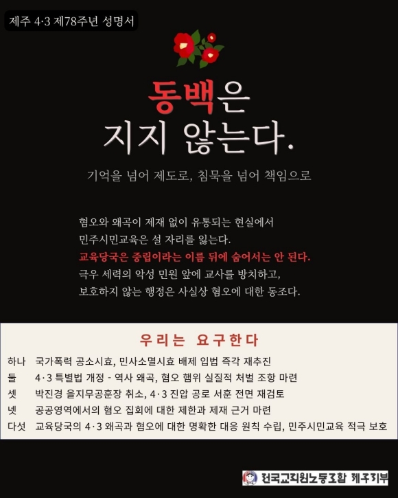 전교조제주지부 "4·3 가르칠 권리 보장해야"