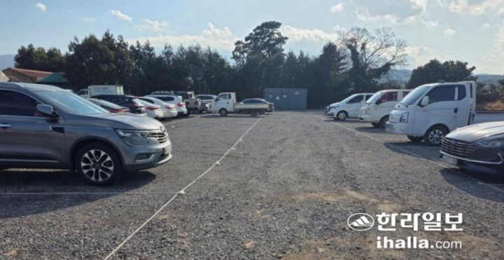오등봉공원 개발사업 인근 임야에 조성된 주차장. 최근 산지관리법 위반 혐의가 확인돼 원상복구 절차를 밟고 있다. 한라일보DB