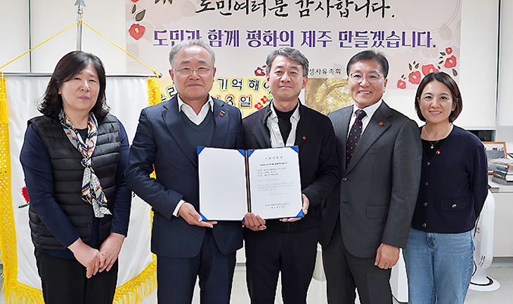 [한라일보] 서귀포시 안덕면 소재 한라산아래첫마을 영농조합법인(대표 강상욱)은 지난달 30일 제주4·3희생자유족회(회장 김창범)를 방문해 제주4·3 추념일인 4월 3일 총매출액의 43%(약 400만원)를 기부한다는 약정서를 전달했다. 약정서 전달식에서 김창범 4·3유족회장은 "4·3 유족이 운영하는 법인에서 아픔을 함께하기 위해 노력해줘 더욱 기쁘다. 유족들의 행복을 위해 최선을 다 하겠다"고 밝혔다.