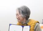 4·3 희생자 유족인 김정희 씨가 지난달 23일 제주시 애월읍 자택에서 뒤틀린 가족관계를 바로 잡기에 나서게 된 계기가 된 자신의 국민학교 생활기록부를 꺼내어 들여다보고 있다. 박소정기자