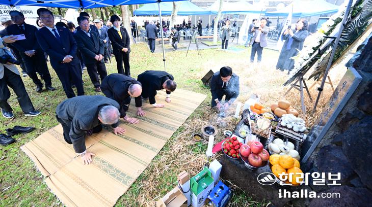 표석 정비하는 4·3유족들
