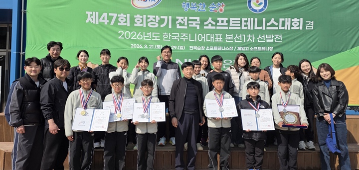 제47회 회장기 전국 소프트테니스대회에서 금메달 1개 등 3개의 메달을 따내 아라초 선수단. 제주소프트테니스협회 제공