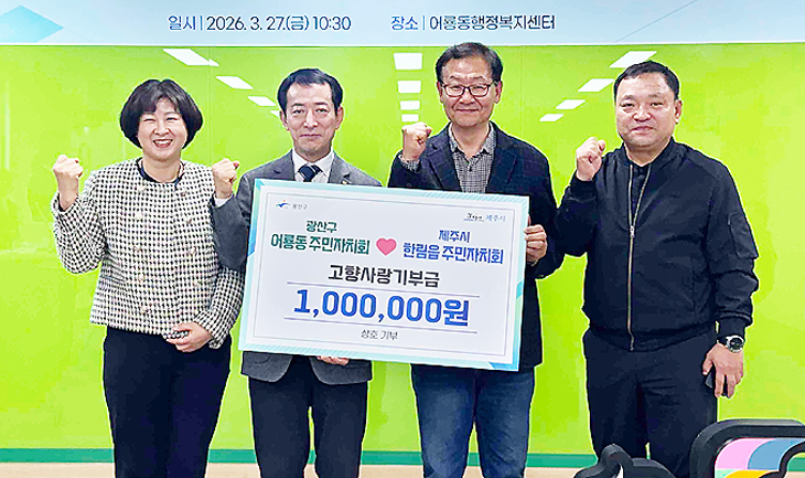 제주시 한림읍주민자치회(회장 강창욱)는 지난달 27일 주민자치 역량 강화와 지역 간 상생 발전을 위해 광주광역시 광산구 어룡동을 방문해 주민자치 우수 사례 공유와 고향사랑 상호 기부를 실시했다.