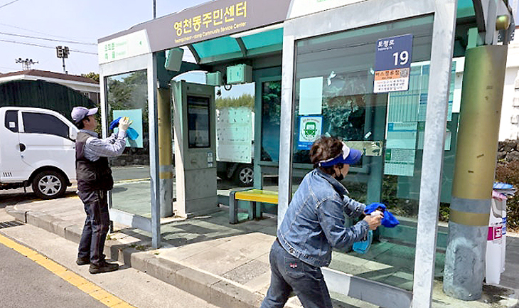 서귀포시 영천동(동장 오창림)은 지난달 27일 지역 내 주민들의 버스 승차대 이용 편의를 높이기 위해 환경 정비활동을 전개했다.