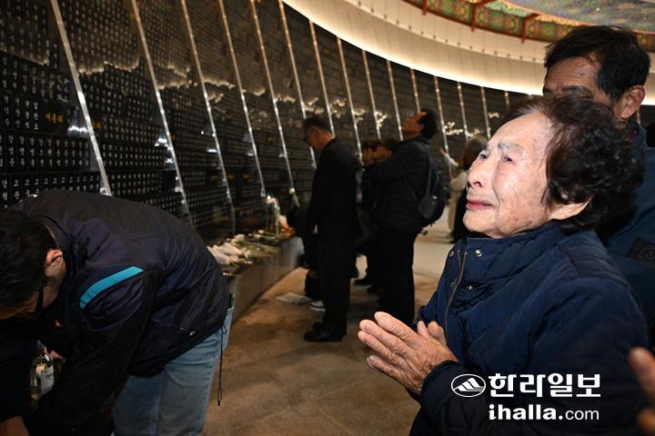 제78주년 4·3 희생자 추념식에서 분향는 유족과 …