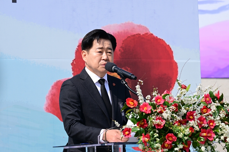 오영훈 제주지사가 3일 거행된 제78주년 4·3희생자 추념식에서 인사말을 하고 있다. 강희만 기자