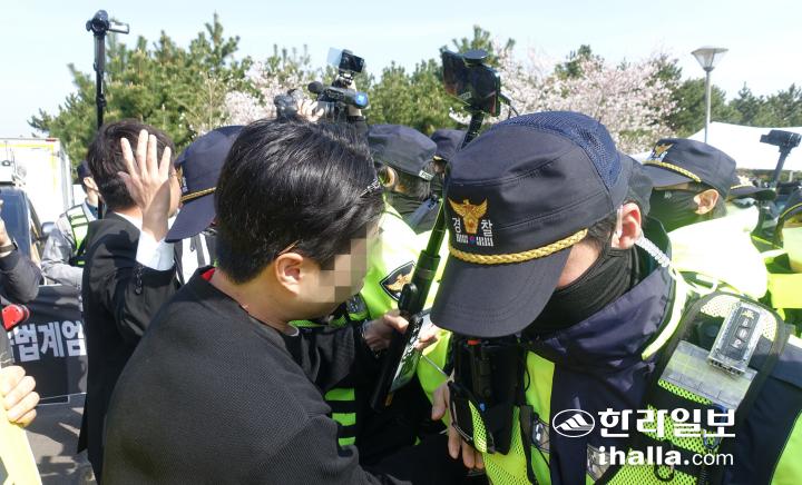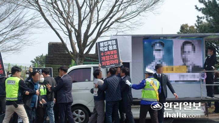 [한라일보] 4·3 희생자들을 기리는 추념식 당일 4·3평화공원 앞에서 4·3단체와 일부 극우 유튜버들이 충돌했다.