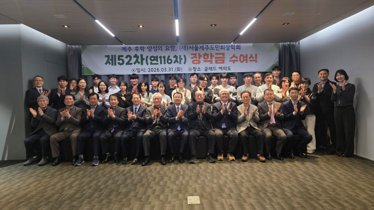 [한라일보] (재)서울제주도민회장학회(이사장 김창희)는 지난달 31일 2026년 1학기 장학금 수여식을 서울 여의도 글래드호텔에서 개최했다.