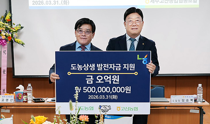 제주고산농협(조합장 고영찬)은 지난달 31일 경기도 지도농협(조합장 장순복)과 도농 상생 자매결연 협약을 체결했다. 이날 지도농협은 고산농협에 도농 상생 자금 5억원을 전달하며 상생 협력의 뜻을 전했고, 제주고산농협은 지역 특산품을 전달하며 감사의 마음을 나눴다.