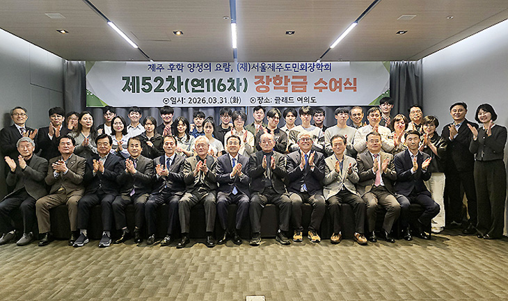 [한라일보] (재)서울제주도민회장학회(이사장 김창희)는 지난달 31일 2026년 1학기 장학금 수여식을 서울 여의도 글래드호텔에서 개최했다.