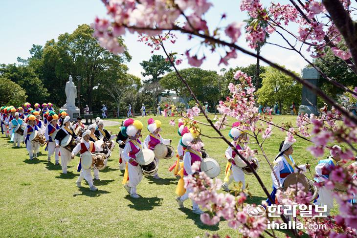 [한라일보] 봄을 알리는 서귀포봄맞이축제가 지난 3일 개막해 5일까지 사흘간 서귀포 일원에서 열렸다. 지난 4일 서귀포시 서복공원 일원에서 11개 읍면동 풍물패의 퍼레이드가 펼쳐져 도민 및 관광객들의 시선을 모았다.