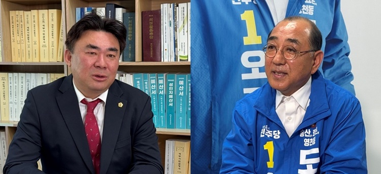 왼쪽부터 국민의힘 강충룡 의원, 더불어민주당 오정훈 예비후보.