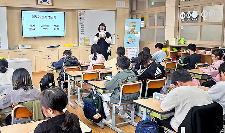 서귀포도서관(분관장 김병철)은 학교 독서활동 지원 사업의 일환으로 지난 3일 서귀서초등학교 3학년을 대상으로 '마법의 낱말 딱지' 그림책을 활용해 아이들이 제주어를 배우고 제주 문화를 이해하는 '제주 탐구 생활' 프로그램을 운영했다.