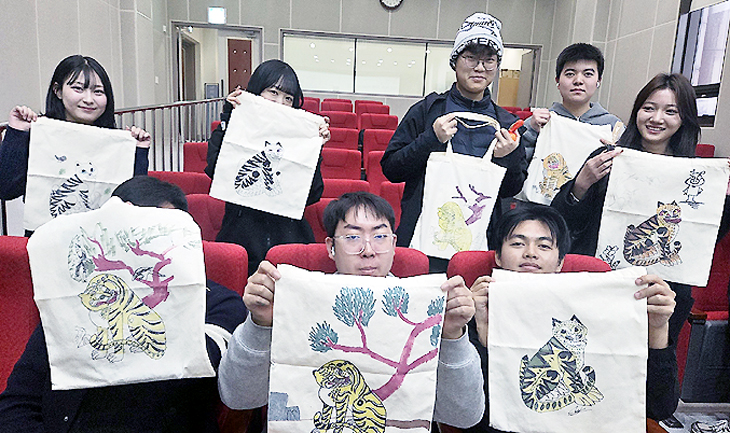 제주대학교박물관(관장 오창윤)은 지난 3일 제주대 외국인 유학생 20여 명을 대상으로 '제주역사문화 바로 알기' 교과 과정의 일환으로 '한국민화 가방 만들기' 체험 수업을 진행했다. 이 교과목은 오는 6월 12일까지 한 학기 동안 총 10차시로 운영된다.