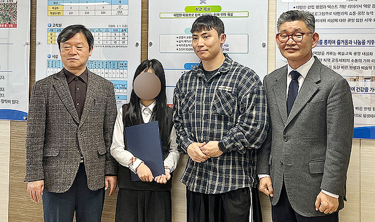 서귀포대신중학교(교장 신상후)는 제11회 졸업생 고상우 동문이 최근 후배들을 위해 장학금 100만원을 기탁했다고 밝혔다. 고상우 동문은 전달식에서 "후배들이 어떤 어려움 속에서도 자신감을 잃지 않고 당당하게 자신의 꿈을 향해 나아가길 바란다"고 격려했다.