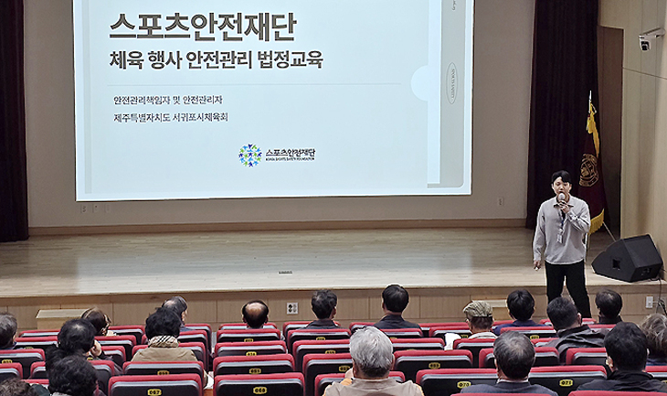 서귀포시체육회(회장 김태문)와 서귀포시장애인체육회(회장 오순문)는 6일 서귀포시청 문화강좌실에서 회원단체 담당자 120여 명을 대상으로 '2026년 체육행사 안전관리 법정교육'과 '2026년 서귀포시 체육단체 보조금 관련 교육'을 실시했다. 이날 교육에서 각종 안전사고 예방 및 체계적인 안전관리 역량 강화와 보조금 집행 및 정산방안 등을 집중적으로 안내했다.