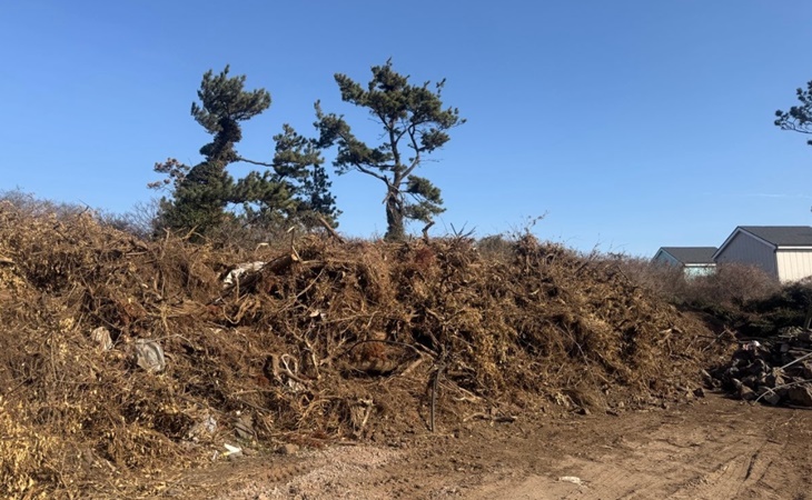 서귀포시 대정읍 영락리 소재 농지에 폐목재·폐석재 등 무단 적치돼 있는 모습. 제주자치경찰 제공