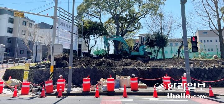 7일 오전 제주시 모 중학교 앞 돌담에서 정비공사가 진행되고 있다. 양유리기자