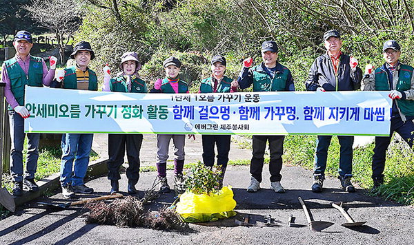 [한라일보] 에버그린 제주봉사회(회장 강기오)는 지난 4일 '1단체 1오름 가꾸기' 지정오름인 안세미오름에서 나무심기 초록 릴레이 캠페인을 전개했다.