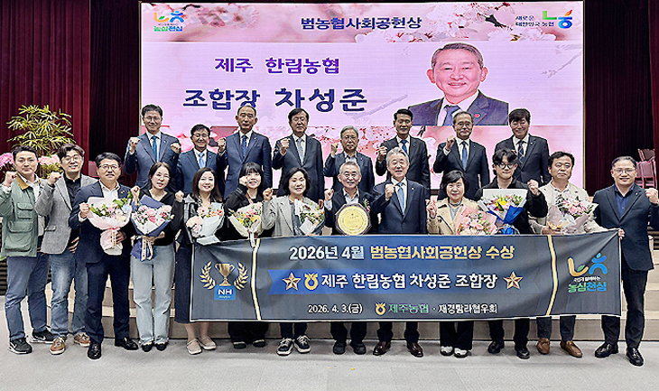 한림농협(조합장 차성준)은 지난 3일 농협중앙회에서 열린 4월 정례조회에서 2026년 1분기 '범농협 사회공헌상'을 수상했다.