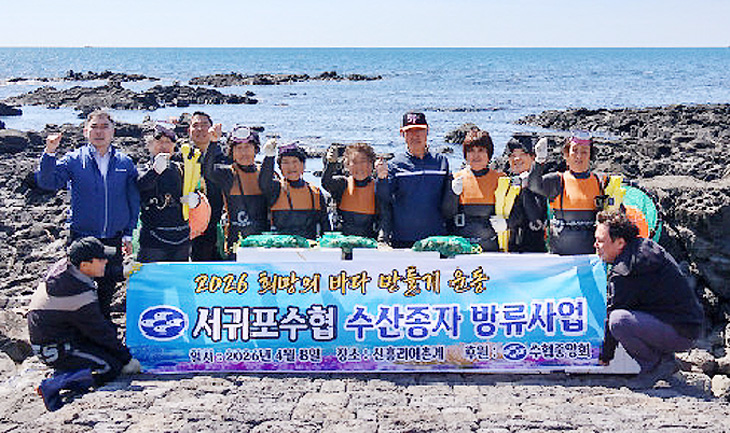 서귀포수산업협동조합(조합장 김미자)은 8일 신흥리어촌계와 하예동어촌계의 어장에서 '희망의 바다 만들기' 운동을 진행해 약 3800만원(보조금 3000만·자부담 800만)을 투입, 수산종자를 방류했다. 서귀포수협은 2018년부터 수산자원 회복에 총력을 기울이고 있다.