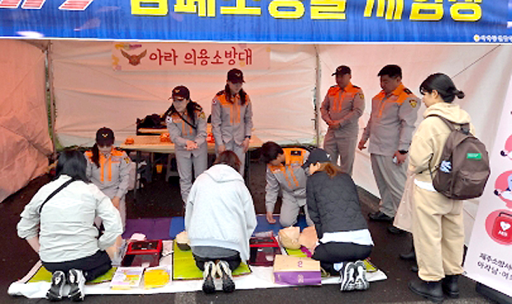 아라의용소방대 심폐소생술 부스 운영