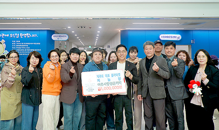 제놀장(대표 현희경)은 지난 11일 탐라장애인종합복지관에서 열린 '반려동물과 함께하는 탐나는 프리마켓' 행사에서 이웃사랑 성금 100만원을 제주사회복지공동모금회(회장 강지언)에 기탁했다.