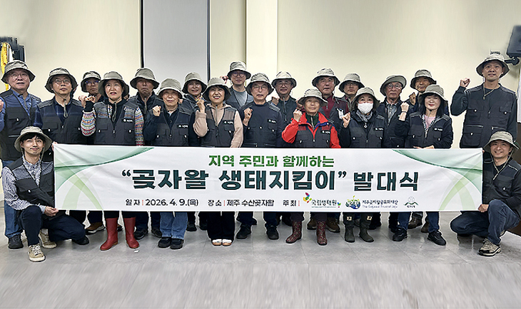 [한라일보] 제주곶자왈공유화재단(이사장 김범훈)은 지난 9일 기후에너지부 산하 국립생태원(원장 이창석)과 서귀포시 성산읍 수산 곶자왈 공유화지의 보전과 연구 협력 강화를 위해 수산2리(이장 오영삼) 주민들이 참여하는 '곶자왈 생태지킴이(대표 오영식)' 발대식을 개최했다. 앞으로 곶자왈 생태지킴이는 수산2리 곶자왈에 구축되는 생태계 표준관측망을 기반으로, 주민들이 중심이 돼 곶자왈 보전·연구 활동에 참여하는 시민과학 방식으로 운영된다. 또 기후변화 대응 생태계 보전 연구와 생태교육·홍보 프로그램 등 다양한 협력 활동을 수행할 예정이다.