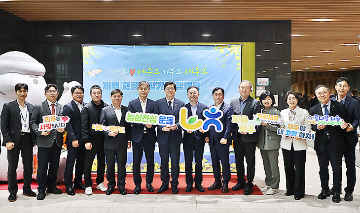 [한라일보] 제주도와 농협제주본부(본부장 이춘협)는 지난 10일 경기 의왕시 소재 NH통합IT센터에서 '제주 고향사랑기부제'에 대한 집중 홍보활동을 벌였다. 이번 행사는 제주가 아닌 지역에 주소를 둔 임직원들을 대상으로 제주 고향사랑기부제의 취지와 참여 방법, 제주의 가치·매력을 널리 전하기 위한 것으로, 양기철 제주도 기획조정실장, 이춘협 제주농협 총괄본부장, 고은정 농협은행 제주본부장, IT본부 이영규 본부장, 박도성 부문장 등이 참석해 제주 고향사랑기부제의 의미를 함께 나눴다.