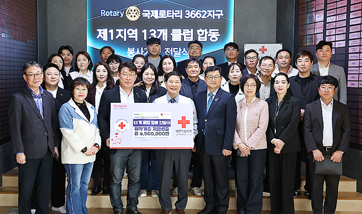 국제로타리 3662지구 제1지역은 최근 대한적십자사 제주특별자치도지사(회장 정태근)에 취약계층 지원을 위한 성금 650만원을 전달했다.