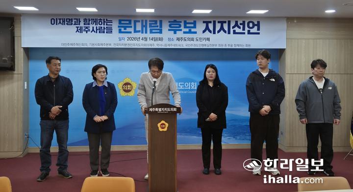 더민주혁신회의 등 도내 6개 단체 소속 회원들이 14일 오후 제주도의회 도민카페에서 기자회견을 열고 있다. 김채현기자