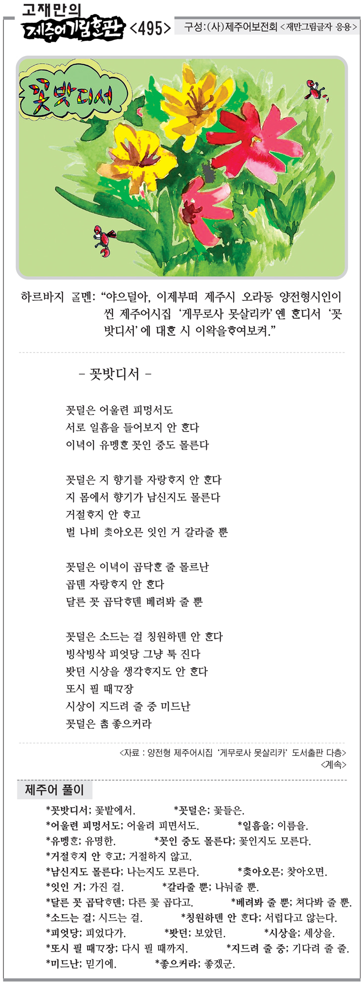 [고재만의 제주어기림혼판] 제주어 풀이(495)