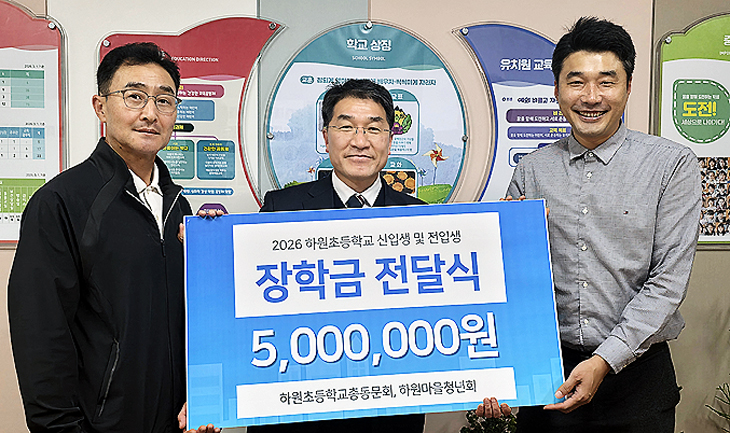 서귀포시 하원동에 있는 하원초등학교(교장 고동림)는 지난 13일 하원초총동문회(회장 김희철)와 하원마을청년회(회장 강기욱)로부터 신입생·전입생을 위한 장학금 500만원을 기탁받았다.