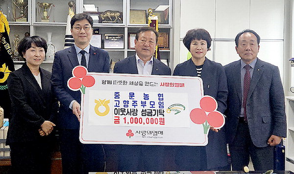 [한라일보] 중문농협 고향주부모임(회장 송민정)은 지난 13일 본점에서 성금 100만원을 사회복지공동모금회 사랑의열매에 기탁했다.