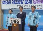 김 후보는 이날 제주도의회 도민카페에서 기자회견을 열어 "지금 진행 중인 여당 경선은 공정성을 상실했다"며 "공무원 개입 관권선거 의혹과 1인2표 불법 선거 논란, 유령 당원 문제 등 모든 것이 드러났음에도 집권여당은 사과도 없이 한 달째 경선을 강행하고 있다"고 꼬집었다.