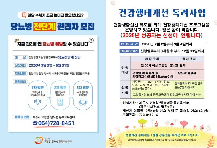 제주보건소, 당뇨 전단계 관리·건강행태개선 사…