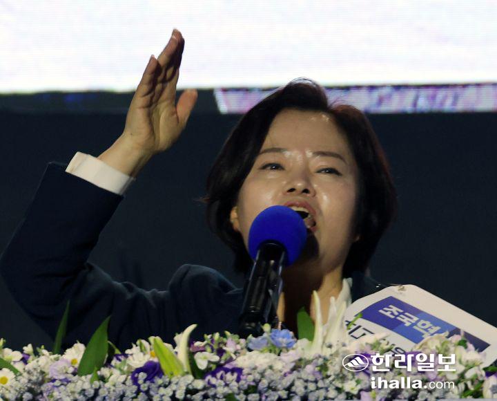지난해 11월 23일 오후 청주 오스코에서 열린 조국현시당 전당대회에서 최고위원에 선출된 정춘생 국회의원의 연설 모습. 연합뉴스