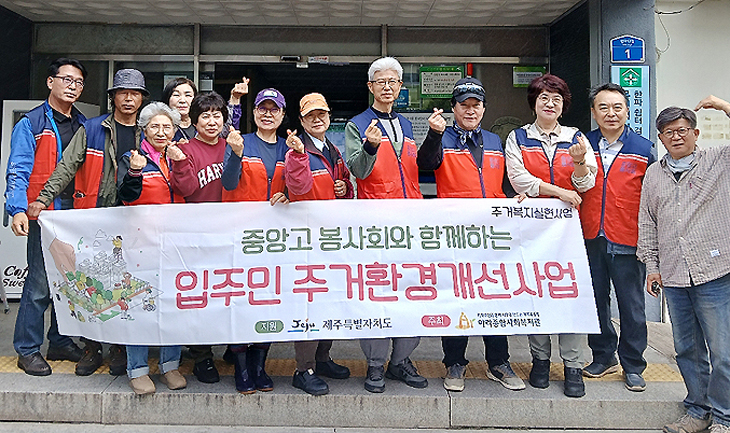 제주중앙고봉사회(회장 홍기찬)는 지난 18일 아라종합사회복지관(관장 권미혜)이 주최하고 제주특별자치도가 지원하는 '입주민 주거환경 개선사업'을 통해 홀로 거주하는 어르신 생활공간 개선 봉사 활동을 실시했다.