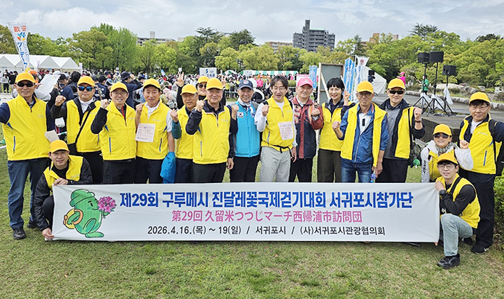 서귀포시와 (사)서귀포시관광협의회(회장 한희섭)는 지난 18~19일 일본 후쿠오카현 구루메시에서 열린 '제29회 일본 구루메시 진달래꽃 국제걷기대회'에 참가했다.