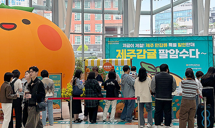 (사)제주감귤연합회(회장 백성익)와 제주도, 농협 제주본부(본부장 이춘협)는 지난 17~18일 서울 영등포 타임스퀘어에서 제주산 만감류 홍보행사를 진행했다.