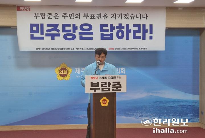 [한라일보] 제주시오라동 선거구에 출마한 진보당 부람준 후보가 더불어민주당 경선 과정에서 불거진 '유령 당원' 의혹과 관련해 당 차원의 책임 있는 대응을 촉구했다.