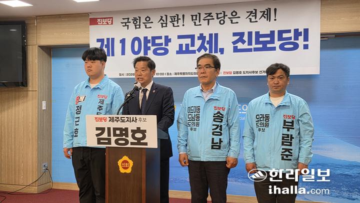 김 후보는 20일 제주도의회 도민카페에서 기자회견을 열고 "제주 제1야당을 반드시 교체하고 제주정치를 반드시 바꾸겠다"며 "진보당 김명호를 선택해달라"고 밝혔다.