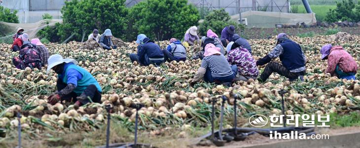 양파 수확 한창… 분주한 손길