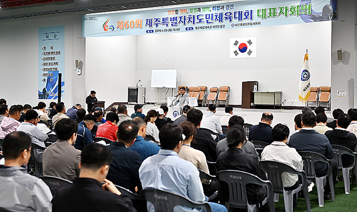 제주특별자치도체육회(회장 신진성)는 지난 20일 제주복합체육관 1층 게이트볼장에서 읍·면·동 및 학교 관계자 150여명이 참가한 가운데 제60회 제주특별자치도민체육대회 대표자회의를 개최했다.