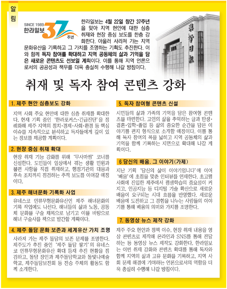 [알림] 창간 36주년, 취재 및 독자 참여 콘텐츠 강…